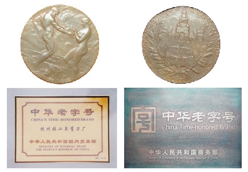 時間進入20世紀,作為刀剪翹楚的張小泉代表當時的民族工業走出國門,并參與了各類國際賽事取得驕人業績。無論是在1915年巴拿馬萬國博覽會,還是1926年費城世博會都獲得了大獎。在1929年首屆西湖博覽會時,獲得西湖博覽會最高榮譽——特等獎,一度引起中外客商爭相訂購。新中國成立后,隨著張小泉制造工藝的改進,一改過去刀剪業作坊式手工加工舊貌,研發了一系列工業制剪機械,讓產品質量和產量快速增長。在國家組織的五次全國剪刀質量評比大賽中,榮膺“五連冠”殊榮。時至1991年,張小泉從全國1600家中國大陸的老牌企業脫穎而出,榮獲國家貿易部認定的第一批中華老字號。在2006商務部重新認定的1000家中華老字號中,張小泉又成為首批重新認定的中華老字號,并以國家商務部的名義授予牌匾和證書。品牌榮耀的延續需要技藝傳承的背書,同年,張小泉憑借剪刀鍛制技藝被國務院列為第一批國家級非物質文化遺產。如此傳承之下也涌現出了如手工鍛造技師施金水、徐祖興這樣一位位 “國家級非物質文化遺產項目代表性傳承人”。