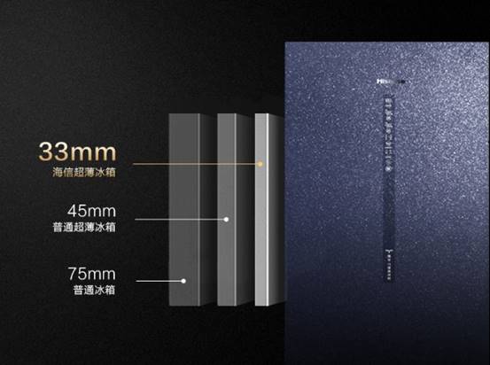 海信真空·超薄冰箱415融入了VIP真空絕熱板黑科技,因此冰箱室壁厚度大幅縮減,特別是冷藏室壁厚度被控制在了33mm,相比普通冰箱的77mm與普通超薄冰箱的45mm都更具優勢,同時冰箱內部壓縮機與內飾結構也得到充分優化。