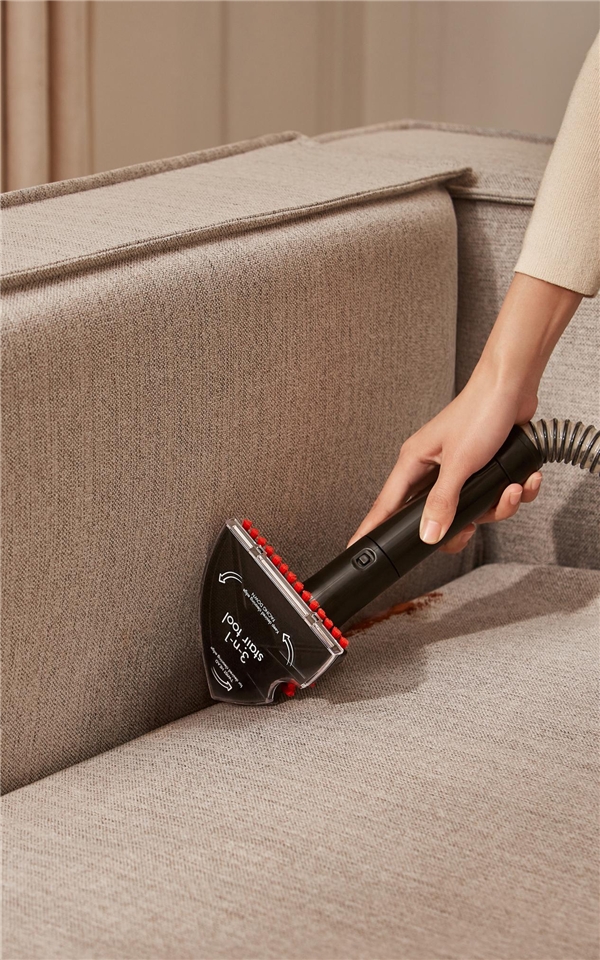 當然了,軟管自清潔刷頭也是實用至上,在清洗完布藝家具之后,用來一鍵自清潔軟管里的污垢,不用自己動手,超省事兒,非常人性化,這也是一代清洗機不具備的。