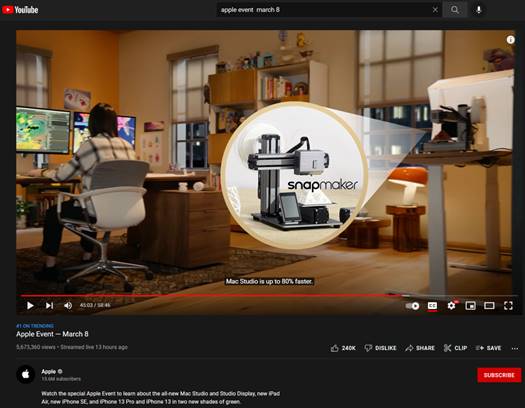 Snapmaker 亮相蘋(píng)果新品發(fā)布會(huì)!3D 打印消費(fèi)化進(jìn)程加快