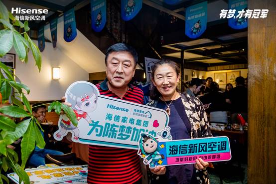 就在5月25日,閩江二路的前方咖啡店里,海信家電集團組織的世乒賽線下觀賽團為海信空調代言人、奧運冠軍陳夢打CALL,陳夢的父母、親朋好友等濟濟一堂,見證這位青島姑娘在德班世乒賽的外戰中連克日本強敵。與此同時,眾多陳夢粉絲涌入“海信空調知選官”抖音直播間,與陳夢父母在云端相聚看球。