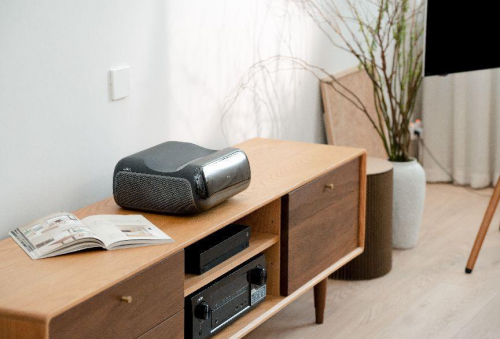 投出百吋畫面時,堅果O2 Ultra 4K光機距離墻面距離加上光機左側機身寬度不足45cm,恰好與絕大部分電視柜寬度(40-45cm)一致,而不需要額外定制電視柜。
