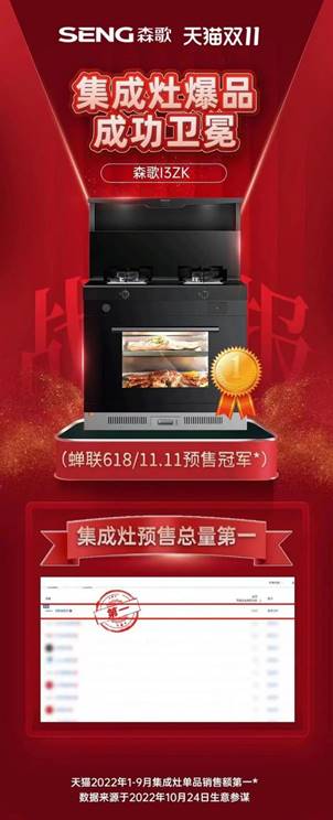 在今年的618和雙十一大促活動中,森歌集成灶以強勁實力穩坐京東店鋪&單品雙料冠軍寶座第五年。其中,森歌i3蒸烤一體升級款集成灶自上市以來便穩居集成灶品類銷售榜TOP1;森歌集成灶T3系列勇奪京東家電全品類TOP10、集成灶預售榜TOP1的好成績,繼續蟬聯今年京東店鋪銷量NO.1、集成灶單品NO.1,亮眼成績業內矚目。