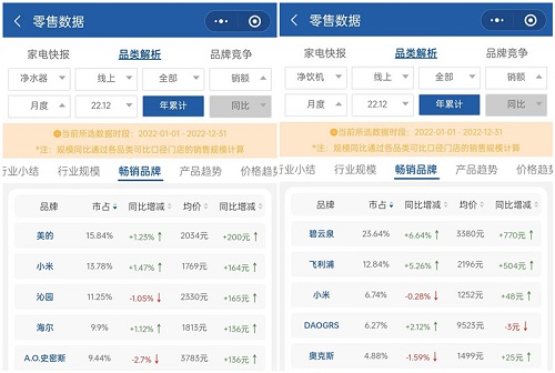 凈水器分為廚下式和臺式,以臺式凈飲機為例,根據奧維云網(AVC)線上監測數據,在2020年到2022年三年間,臺式凈飲機零售額同比分別增長了59.7%、11.1%、0.7%,飲水市場從高速井噴進入良性發展。作為一個成長型品類,凈飲機市場在2022年增長動力稍顯不足。