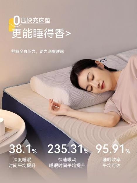 夢百合快充床墊是專為熬夜人群打造的,快速充能,更加適合當前年輕人的睡眠需求,即便睡得少也要睡得好,整體睡感軟硬適中,支撐和舒適度都比較均衡。