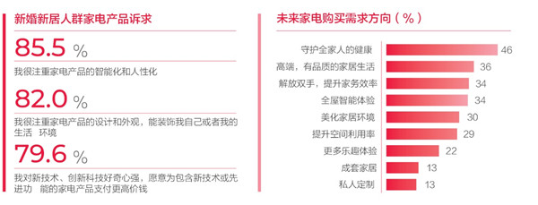 新婚新居人群更加注重家電的設(shè)計和外觀,能夠和自己家庭環(huán)境相得益彰;而其中以Z世代為代表的新生代人群,則更加注重產(chǎn)品的智能化與人性化,比例超過85%,同時他們對創(chuàng)新科技也有著強(qiáng)烈的好奇心,并愿意為此多付出購買成本。而對于新房裝修者在裝修時的家電產(chǎn)品配備,愈發(fā)關(guān)注家電與家裝的相互融合,不再僅僅滿足于單產(chǎn)品,有超過50%的消費者愿意考慮套系化購買,甚至希望家電產(chǎn)品設(shè)計風(fēng)格與裝修風(fēng)格一致。在風(fēng)格一致的基礎(chǔ)上,有53%的消費者希望成套購買的原因是可以全面智能互聯(lián),進(jìn)而實現(xiàn)智慧場景基礎(chǔ)上的“家庭全屋舒適生活解決方案”。煥新人群相對更加追求高品質(zhì)產(chǎn)品或新科技帶來的先進(jìn)功能,愿意為高科技或高品質(zhì)買單,愿意追求潮流新時尚;他們首先看重大品牌,更加關(guān)注關(guān)愛體貼的服務(wù),對產(chǎn)品方面操作非常看重。
