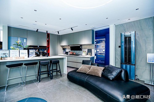 與潮流的外觀交相輝映的是店內(nèi)的智慧生活體驗(yàn)。從大廳進(jìn)到2樓,眼前就是“夢中情屋”,一居室的智能體驗(yàn)樣板間,囊括了廚房、客廳等多個(gè)智慧生活體驗(yàn)區(qū),智慧回家、智慧烹飪、私人影院等場景款款心動(dòng);3樓采用“4+2+N”的創(chuàng)新性“場景盒子”設(shè)計(jì),充分利用空間,自由穿梭其中,盡是智慧生活細(xì)節(jié);4樓則把家裝煥新的材料、工藝、系統(tǒng)解決方案等專業(yè)展示空間結(jié)合藝術(shù)、工坊等方式呈現(xiàn),成為一個(gè)獨(dú)特的生活角,可參與性更強(qiáng);5樓則將最佳景觀位置打造成高端私人會(huì)所,還邀請米其林廚師在高端明廚內(nèi)現(xiàn)場演示,品質(zhì)拉滿。