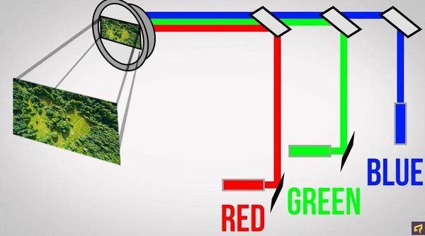 三色激光則是分別依靠三色激光器發出紅、綠、藍三原色,不需要通過熒光色輪的部件即可直接成像,通過混合這三種顏色來產生各種色彩的畫面。