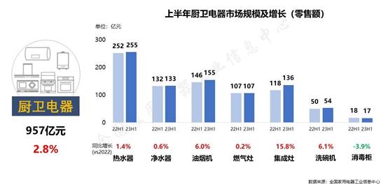 全國家用電器工業信息中心研究部部長宋敬學對《2023年中國家電行業半年度報告》進行了解讀。全國家用電器工業信息中心數據顯示,2023年1-6月國內家電市場(注:本報告中所述家電市場規模均不包含3C產品,主要為彩電、空調、冰箱、洗衣機、廚衛和生活電器產品)累計實現銷售額3711億元,同比增長2.8%。出口方面,據海關總署數據顯示,1-6月家用電器累計出口量為172893萬臺,同比增長1.4%;累計出口額為2967億元人民幣,同比增長5.2%。