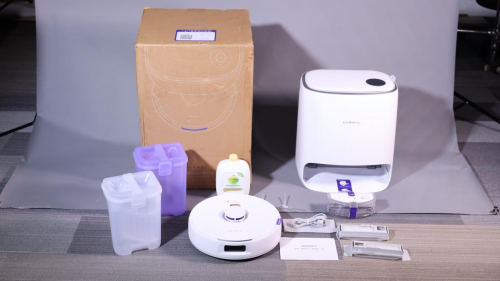 整體配件:基站、機器人主機,滾刷,旋轉邊刷一對,集塵袋三個、集塵盒一個、銀離子除菌模塊一個,拖布一對,說明書一本。