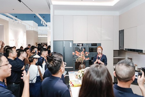 除了一居室的智慧家樣板間,用戶還可以在黑曜廚房、光年廚房、星河黑巖板廚房的高端成套場景中,感受三翼鳥的個性化定制實力。比如現場展示的三翼鳥首套以白色為主調的廚房——光年套系廚房,不僅采用了統一的云巖白配色,在空間上也實現了全套嵌入式設計。在配套行業領先的烹飪科技下,無論中式和西式烹飪都有專業體驗,且冰箱還能有效保鮮食材,并生成健康膳食營養方案,聯動蒸烤箱實現一鍵烹飪。
