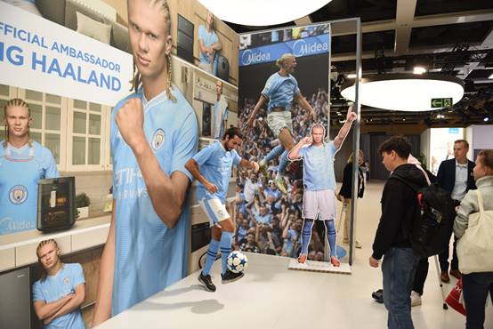 活動當(dāng)天,美的全球品牌代言人——埃爾林·哈蘭德也以視頻的形式出現(xiàn)在發(fā)布會現(xiàn)場,足球世界前鋒為科技先鋒助陣,雙鋒相遇,也彰顯著美的讓可持續(xù)發(fā)展成為先鋒的決心。