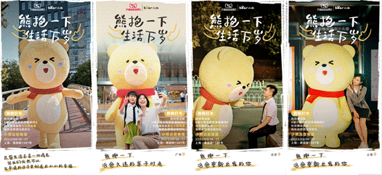 如何才能治愈年輕人?小熊電器認為,相比于需要思考、深度體驗、互動的活動,直觀、簡單、自然的感受更能給年輕人治愈感。于是,9月13日-15日,一場街頭熊抱快閃巡游之旅,陸續在廣州、北京等地開啟,在辦公樓下、公交站、地鐵站、公園、學校等角落,都有熊抱出沒,隨時準備擁抱每一個需要治愈的陌生人。