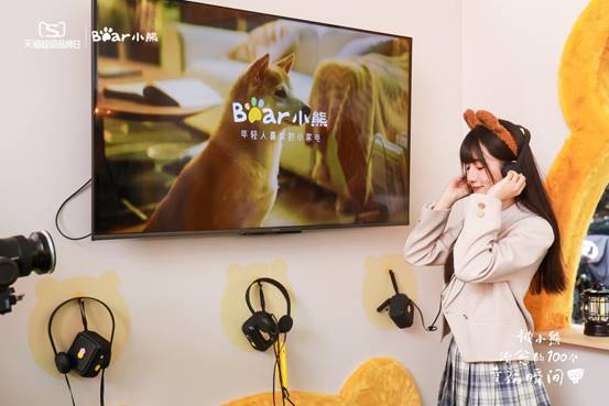 一眼望過去,小熊治愈角落整體毛絨絨的觸感,讓人從看到的瞬間就忍不住直呼被“暖”到了。而現場的觀眾只需從工作人員處領取集章卡,就可沿著路線圖開始打卡,第一個打卡的就是治愈語音區。在這里,不僅可以收看小熊電器代言人吳磊與小熊電器的治愈故事《被小熊治愈的100個幸福瞬間》,還可以帶上耳機靜靜聽一段ASMR,滋滋的烤肉聲、咕嚕咕嚕的煮水沸騰聲,還有吳磊的治愈語音……讓體驗者從聽覺開始平復內心,感受幸福。