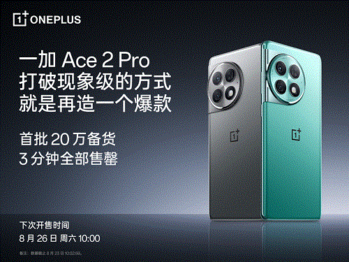 一加 Ace 2 Pro首批20萬臺僅3分鐘售罄
