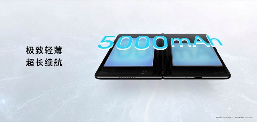 榮耀Magic Vs2在做到極致輕盈機身的同時,也延續了榮耀折疊屏一貫的長續航優勢,內置5000mAh大容量電池,電池容量在市售折疊屏手機中處于領先。