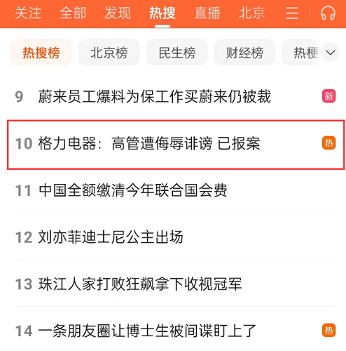 “格力電器:高管遭侮辱誹謗 已報案”沖上百度熱搜 網友:自媒體惡意剪裁