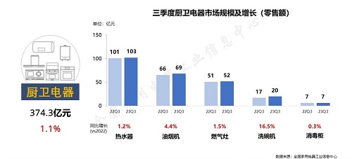 家電消費網11月20日訊 廚衛市場2023年整體穩健復蘇,三季度環比增幅放緩但整體向上的趨勢仍在延續。昨天,全國家用電器工業信息中心研究員楊征對《2023年中國家電行業三季度報告》進行了解讀。