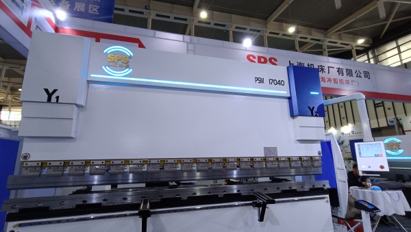在南京國際展覽中心3號館,上海機(jī)床廠展廳顯得低調(diào),一款電液同步數(shù)控折彎機(jī)正在異常安靜地工作。