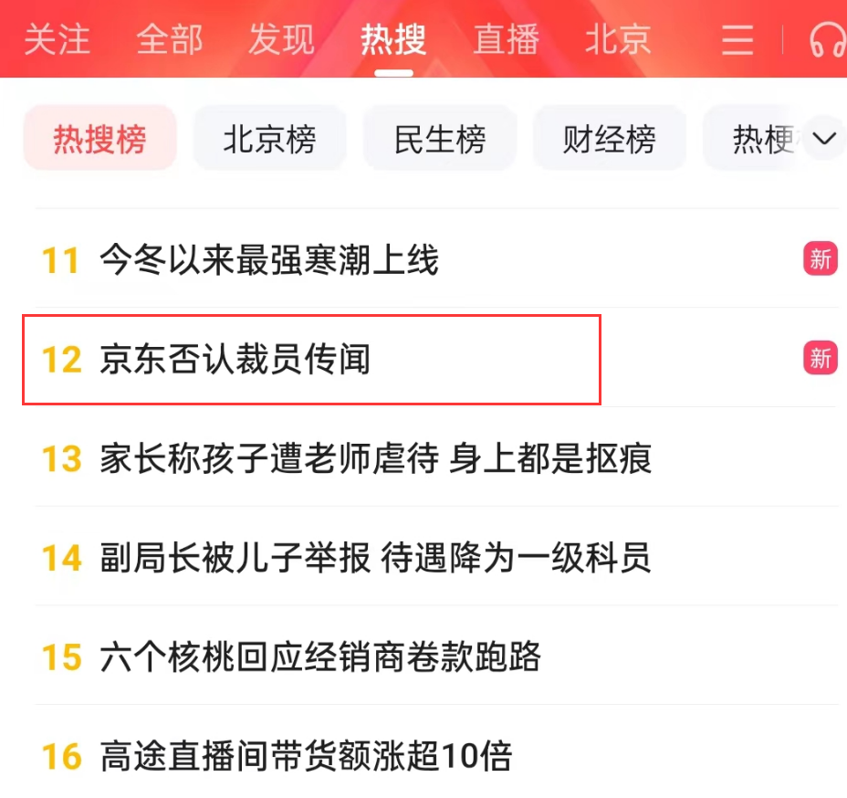 “京東否認裁員傳聞”沖上百度熱搜 京東:還在招人