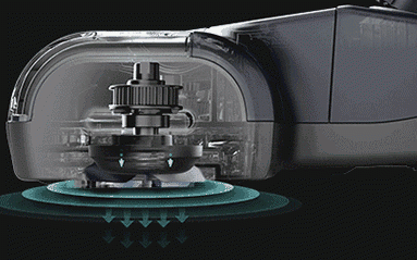 使用PVC材料打造的地刷主要用來代替傳統滾布,米博通過對地刷結構的優化,使其在高轉速下可以形成氣旋,通過旋轉的力量將外部污漬從物體表面清除并吸入污水槽中,從而達到更好的清潔效果。