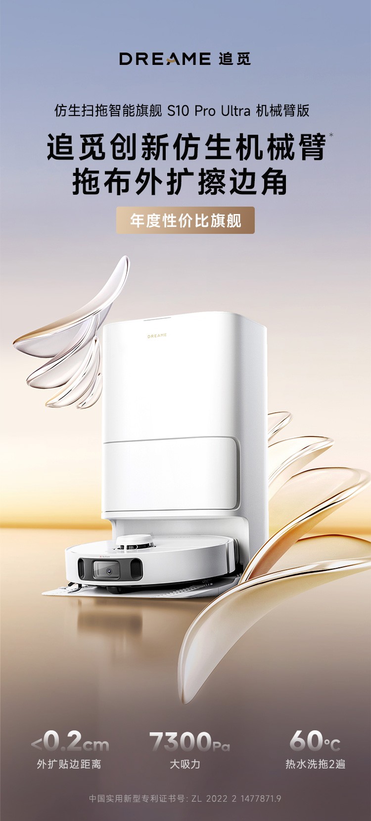 全球首創(chuàng)仿生機(jī)械臂首次下放,首款毫米級貼邊方案,極致貼邊距離<0.2cm,家庭清潔無死角