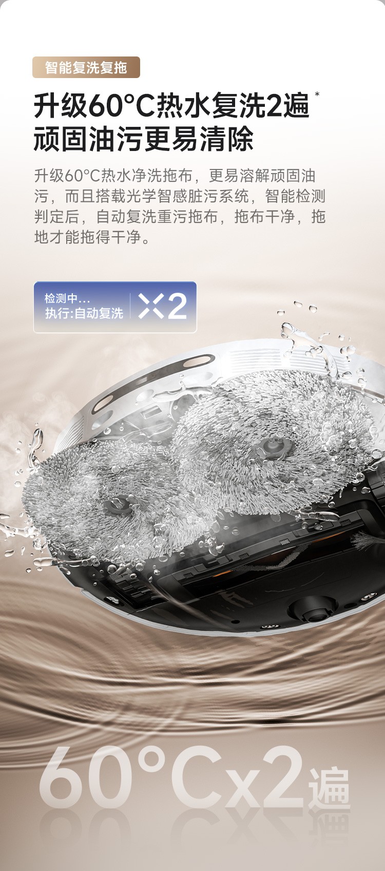 十項(xiàng)全能基站,60℃熱水洗拖布+智能復(fù)洗復(fù)拖,全鏈路除菌,強(qiáng)力自清潔方便易用