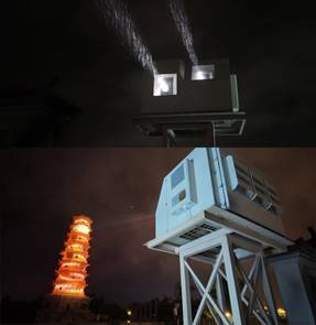 在湄洲島天妃故里遺址公園,一場視覺盛宴正吸引著無數游客的目光。項目場地內,光峰工程G系列的4臺投影機大顯身手,它們以20.8*13米的超大畫面尺寸,覆蓋畫面高度32米。激光投影機的安裝采用豎投的方式,同時配備了專屬的防護箱,在海島高濕度、大溫差和多強風的環(huán)境下,確保設備的穩(wěn)定運行。