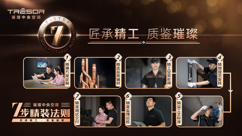 俗話說“中央空調(diào)三分買,七分裝。”為此,璀璨中央空調(diào)獨創(chuàng)“7步精裝法則”,從前期的需求溝通和方案設(shè)計,到現(xiàn)場的安裝施工和設(shè)備調(diào)試,嚴(yán)格把控每一個環(huán)節(jié),確保每一臺空調(diào)都能夠達(dá)到最佳的性能和效果,這不僅僅是一個簡單的安裝流程,亦是對卓越品質(zhì)的執(zhí)著追求和堅持。
