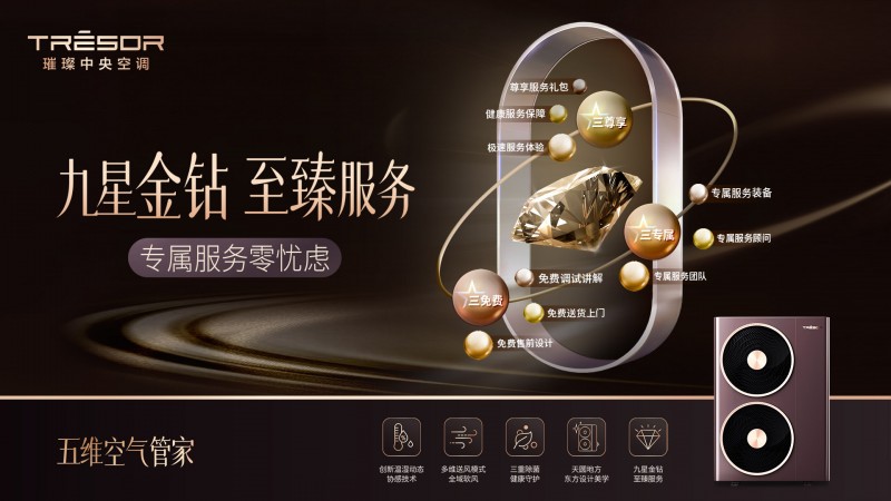 不僅如此,璀璨中央空調(diào)還提供了9星金鉆服務(wù)(三尊享,三免費,三專屬),承諾為用戶免費售前設(shè)計、免費調(diào)試講解、免費清洗保養(yǎng),確保用戶的中央空調(diào)系統(tǒng)從設(shè)計到安裝都完美無瑕;同時,璀璨中央空調(diào)提供專屬服務(wù)團隊、專屬服務(wù)顧問和專屬服務(wù)裝備,全程呵護用戶的空調(diào)系統(tǒng)。