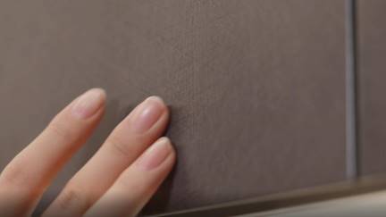 灰砂巖背板結合黑色鋁框搭配玻璃面板