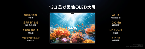搭載柔性OLED云晰柔光屏[2],以柔克“光”,防眩護眼
