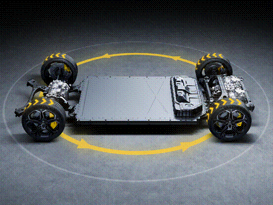 雷軍展示的原地掉頭、圓規掉頭等場景,都是四電機獨立驅動的典型應用。通過控制左右兩側輪胎以相反方向轉動,就能實現以車輛中心為圓心的原地調頭;通過制動鎖住單個車輪,車身以該車輪為中心即可進行圓規掉頭。小米超級四電機系統在實現這些功能的同時,還進行了進一步的探索。原地掉頭的速度可以控制,想快就快,想慢就慢,展現了極高的控制能力。