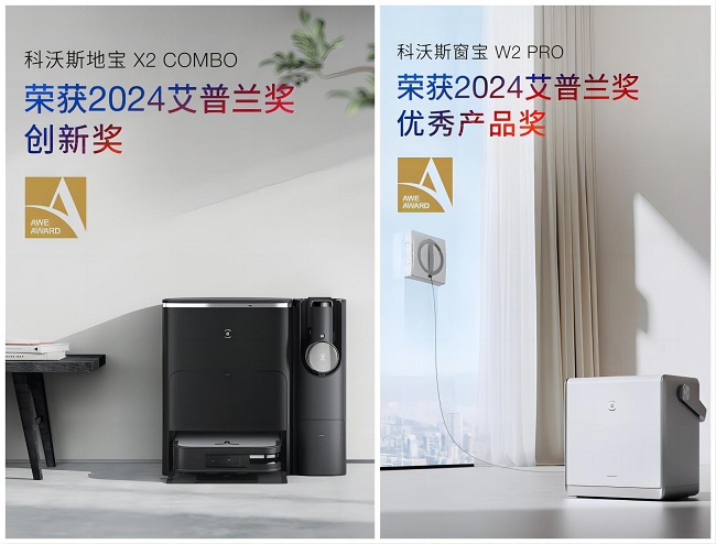 行業(yè)領(lǐng)先!科沃斯地寶X2 COMBO與窗寶W2 PRO榮膺AWE艾普蘭兩項大獎