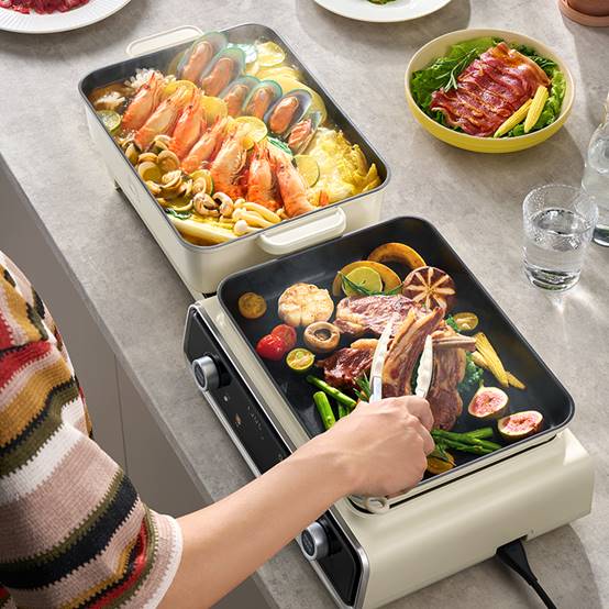 更貼心的是,它還通過技術創新,讓烹飪更高效、更便捷。其升級新一代鉚管式加熱系統,2100W的發熱功率可做到猛火瞬熱,再搭載動態熱補償系統,能夠做到連續2小時火力穩定不跳斷,讓用戶即享美食不等待。此外,它還支持自動識別鍋具,智能分配火力。如準備煎肉餅時,煎鍋放上便會出現“煎烤”模式菜單,同時智能分配煎盤所需火力,用戶一鍵確認后便能開始煎肉,輕松享受美食。
