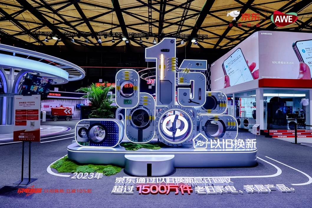 此次AWE期間,京東特別設立家電家居以舊換新服務展區,現場觀眾可以近距離感受以舊換新藝術裝置,參與打卡合影活動還有機會領取獎勵。
