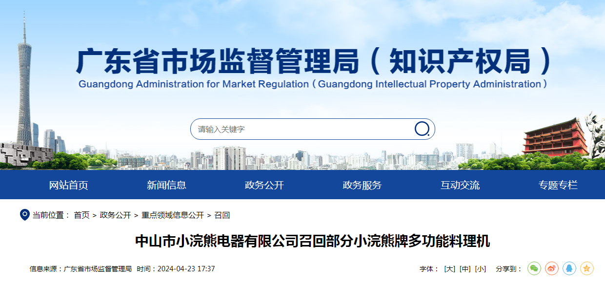 導(dǎo)讀: 家電消費(fèi)網(wǎng)4月28日訊 昨天, 廣東中山市小浣熊電器有限公司主動(dòng)向廣東省市場監(jiān)督管理局報(bào)告了召回計(jì)劃,將自即日起,召回2021年12月28日制造的部分小浣熊牌HM-603型號(hào)多功能料理機(jī),涉及數(shù)量為300臺(tái)。