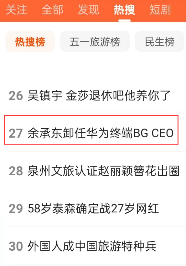 “余承東卸任華為終端BG CEO”沖上百度熱搜