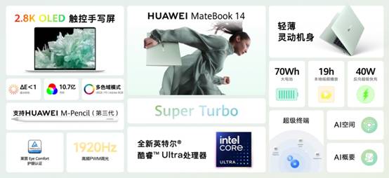 家電消費(fèi)網(wǎng)5月15日訊 今天,華為召開夏季全場(chǎng)景新品發(fā)布會(huì),發(fā)布可手寫可觸控的2.8K OLED好評(píng)本——新款華為MateBook 14。該機(jī)標(biāo)配2.8K OLED手寫觸控屏、采用全新外觀設(shè)計(jì)并帶來了原野綠新配色;性能上,至高搭載英特爾®酷睿™Ultra 7高性能處理器。盤古大模型加持的AI概要[1]、一站式AI能力聚合入口——AI空間,以及由超級(jí)終端帶來的各項(xiàng)智慧互聯(lián)能力也都一應(yīng)俱全。