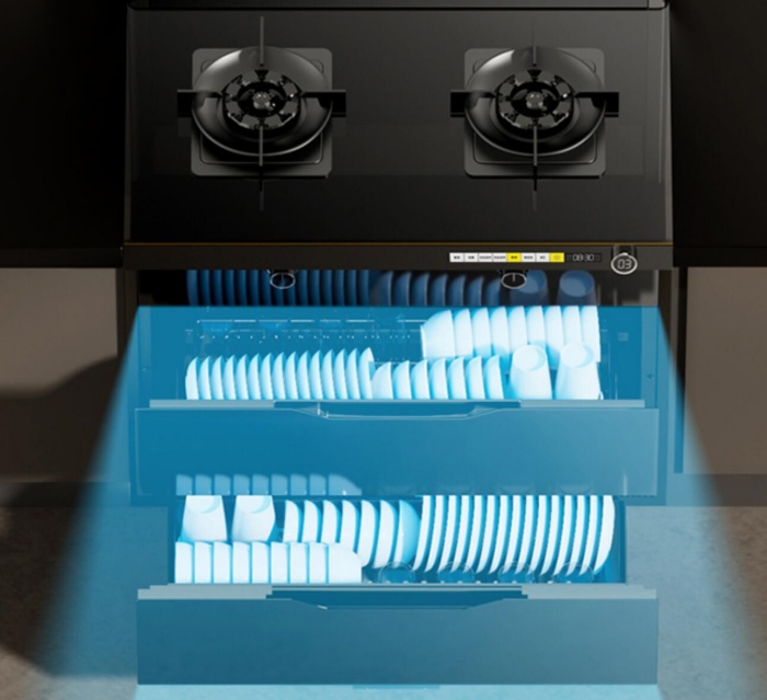 煙灶+消毒柜的設計更適合國人需求。張女士說之所以沒有買烤箱款,是家里之前購入了空氣炸鍋和小烤箱。家人并不特別喜歡吃烤制食物,用個空氣炸鍋烤烤紅薯、花生米就夠用了。小烤箱則基本閑置。“洗碗機洗一次碗要2個小時,而且家里人口也不多,吃完飯碗筷就隨手洗了,所以對我來說消毒柜更實用。”帥康集成灶GX6601的消毒柜不僅有自動消毒、烘干功能,同時還有儲物功能,100升大容量加上雙層抽屜式設計,解決了收納碗筷和碗筷自動消毒問題,方便日常拿取碗筷,更加實用。