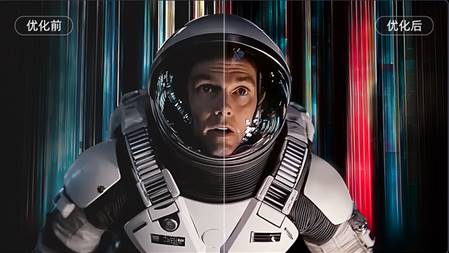 新品U8N采用海信自研的信芯®AI畫質芯片 Pro,通過AI深度學習優化,能針對實際使用環境,提升色彩、對比度、清晰度和流暢度,實現全鏈路畫質調校,相當于給U8N安上了“最強大腦”。例如在觀看一些畫質糊的老電影時,通過AI動態超解像能夠實現畫質增強,低碼率也有4K觀感;遇到暗場較多、光影交錯的電影場景,通過全域明暗精控,陰影中也能看到色彩細節,AI超感景深增強讓暗場里的人物臉上也能塑造景深感。