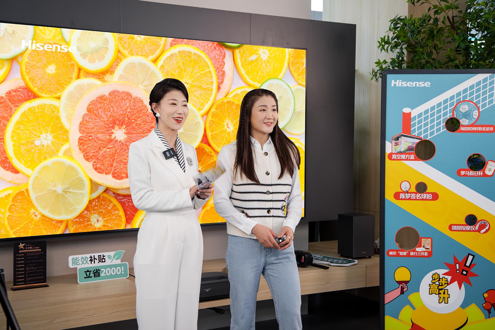 陳夢(mèng)表示,用海信激光電視來玩乒乓球游戲,過程中非常絲滑流暢,畫面清晰可感,會(huì)有更沉浸的游戲體驗(yàn),也能夠在訓(xùn)練日常之余放松心情,是很好的家庭娛樂一角。