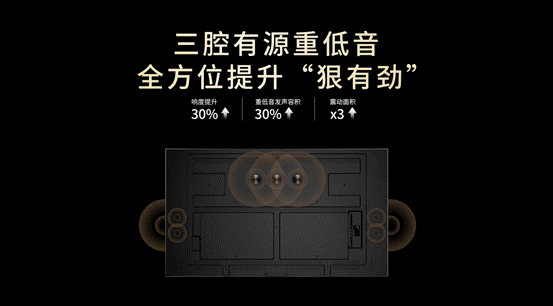 最后,好的音質加持是電視重要加分點。Q10Air是30mm內唯一內置三腔獨立重低音的電視。配備的是三腔有源重低音,相比普通音響,它的震動面積增加了3倍、響度提升30%、重低音發聲容積也提升30%,再配合專為追光系列定制的R6曲率聲學設計,讓它發出的不僅僅只是“聲音”,更是從四面奔涌而來的“音瀑”。