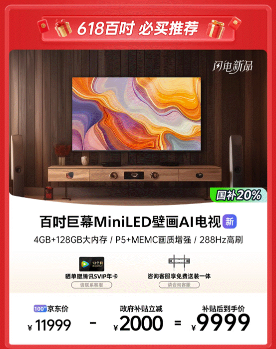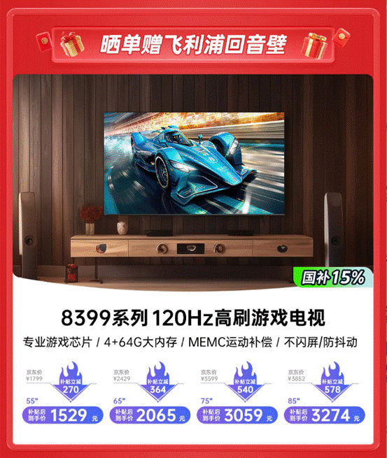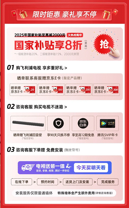電視影音618返場(chǎng)狂歡!飛利浦電視攜至高8折國(guó)補(bǔ),點(diǎn)燃視聽煥新熱情!還有京東E卡、飛利浦回音壁、騰訊SVIP年卡、電視送裝一體等多重好禮相贈(zèng),無(wú)論是追求極致畫質(zhì)的觀影愛好者,還是暢享大屏娛樂(lè)的家庭用戶,讓飛利浦電視承包你的家庭影院時(shí)光!