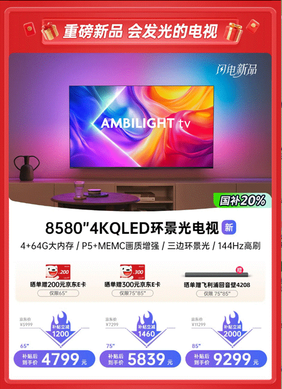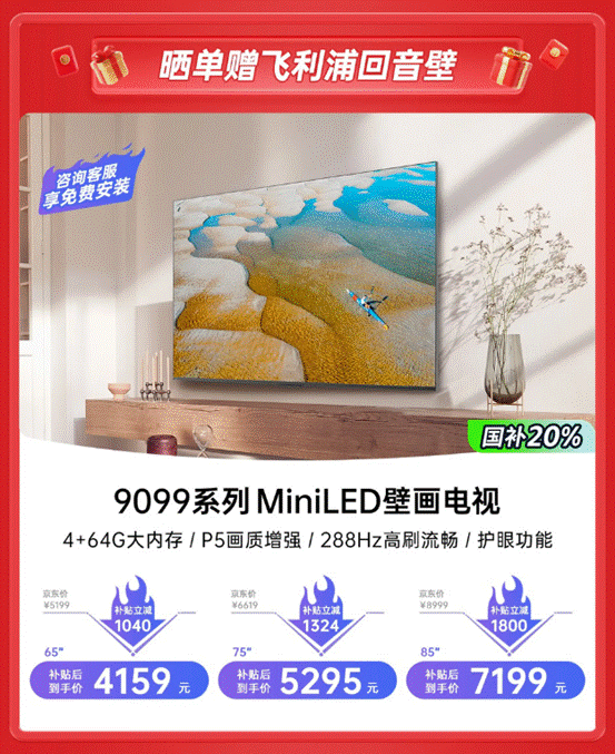 導(dǎo)讀: 電視影音618返場(chǎng)狂歡!飛利浦電視攜至高8折國(guó)補(bǔ),點(diǎn)燃視聽煥新熱情!還有京東E卡、飛利浦回音壁、騰訊SVIP年卡、電視送裝一體等多重好禮相贈(zèng),無(wú)論是追求極致畫質(zhì)的觀影愛好者,還是暢享大屏娛樂(lè)的家庭用戶,讓...