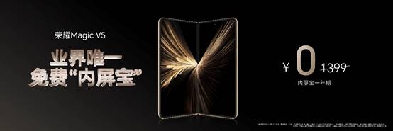 榮耀Magic V5本次配備四款全新配色:曙光金、絲路敦煌、暖白色、絨黑色,售價8999元起,并發布業內唯一免費“內屏寶”。