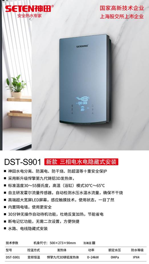 行業(yè)第一職業(yè)經(jīng)理人劉付志成介紹,這幾年,隨著中國(guó)城市電力條件的快速提升,越來(lái)越多的地方三相電產(chǎn)品銷售火爆。因?yàn)槿嚯娂礋崾疆a(chǎn)品可以即開即熱,水量可以洗浴缸,體積小巧且可以隱藏式安裝,受到眾多高端用戶的喜歡。神田集團(tuán)這幾年也一直在開發(fā)系列的高端產(chǎn)品,此次推出的S901也是近期發(fā)布的高端產(chǎn)品之一。