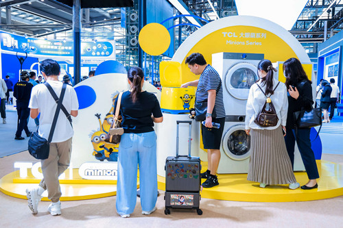 在冰洗展區(qū),展示有TCL聯(lián)合小黃人大眼萌官方推出的AI超級(jí)筒洗烘一體機(jī)T7R Pro,擁有行業(yè)Top1級(jí)1.31洗凈比。萌趣的IP外觀設(shè)計(jì),將科技感與童趣完美融合,極具幸福感與治愈力,在展會(huì)上備受關(guān)注。