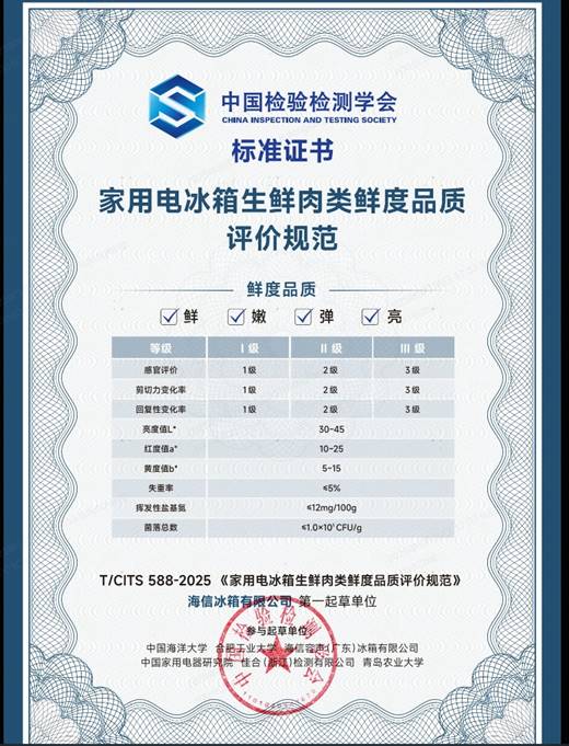 業內專家指出,《家用電冰箱生鮮肉類鮮度品質評價規范》的成功審定與發布,是中國冰箱行業在肉類保鮮領域邁入標準化、科技化新階段的重要標志。它展現了以海信為代表的中國家電企業持續創新、引領消費升級的責任與擔當,持續推動著行業進步與家庭品質生活的提升。