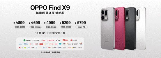 Find X9系列4399元起售,10月22日正式開售;Find X9 Pro衛(wèi)星通信版11月開售,并將率先支持eSIM。OPPO與哈蘇聯(lián)合打造的哈蘇專業(yè)影像套裝售價1699元。(溫麗雅)